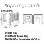 - Διαστάσεις στρώματος: L120 x W60 (περιλαμβάνεται)