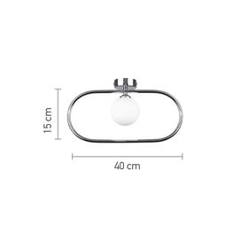 Επιτοίχιο φωτιστικό σε μαύρο φινίρισμα, με οβάλ μεταλλικό πλαίσιο διαστάσεων 15 × 40 cm. Διαθέτει κεντρικό σφαιρικό διαχύτη από λευκή οπαλίνα (white opal), ο οποίος εξασφαλίζει ομοιόμορφη διάχυση του φωτός 360° χωρίς θαμβώσεις.Η μεταλλική κατασκευή διακρίνεται για τη στιβαρότητά της, δημιουργώντας μια έντονη οπτική αντίθεση με τον γυάλινο διαχύτη που λειτουργεί συμπληρωματικά για τη βέλτιστη εξομάλυνση του φωτισμού. Ο σχεδιασμός του επιτρέπει την τοποθέτηση σε οριζόντια ή κάθετη διάταξη, καθιστώντας το ιδανικό για συμπληρωματική φωταγώγηση και αρχιτεκτονική ανάδειξη εσωτερικών επιφανειών.Διαθέτει ντουί τύπου G9, παρέχοντας στον επαγγελματία την ευελιξία επιλογής λαμπτήρα LED ως προς την ισχύ και τη θερμοκρασία χρώματος, ενώ παράλληλα εξασφαλίζει ευκολία στη συντήρηση.ΧαρακτηριστικόΠεριγραφήΤύπος ΝτουίG9Αριθμός Λαμπτήρων1Θερμοκρασία Φωτός3000ΚΥλικό ΚατασκευήςMetal & White Opal GlassΧρώμαΜαύρο Ματ / ΛευκόΔιαστάσεις15 × 40 cmΤοποθέτησηΕπιτοίχια (Οριζόντια ή Κάθετη)Εφαρμογή ΧώρουΕσωτερικός χώροςΒαθμός ΠροστασίαςIP20