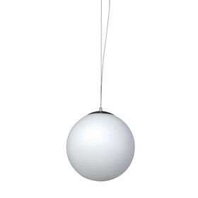 Κρεμαστό φωτιστικό οροφής σε σφαιρική σχεδίαση με διάμετρο 30 cm, με διαχύτη από γυαλί οπαλίνα σε λευκό φινίρισμα, που εξασφαλίζει απόλυτα ομοιόμορφη διάχυση του φωτός και υψηλή οπτική άνεση χωρίς έντονες σκιές ή ενοχλητικές αντανακλάσεις.Η κατασκευή συνδυάζει γυαλί υψηλής ποιότητας με μεταλλική ανάρτηση σε φινίρισμα νίκελ ματ, προσφέροντας αντοχή και σταθερότητα στη χρήση. Το φωτιστικό διαθέτει ρυθμιζόμενο καλώδιο ανάρτησης, επιτρέποντας την προσαρμογή του ύψους ανάλογα με τις ανάγκες της εφαρμογής.