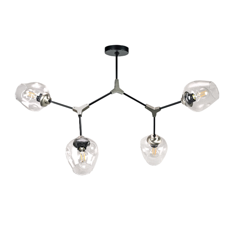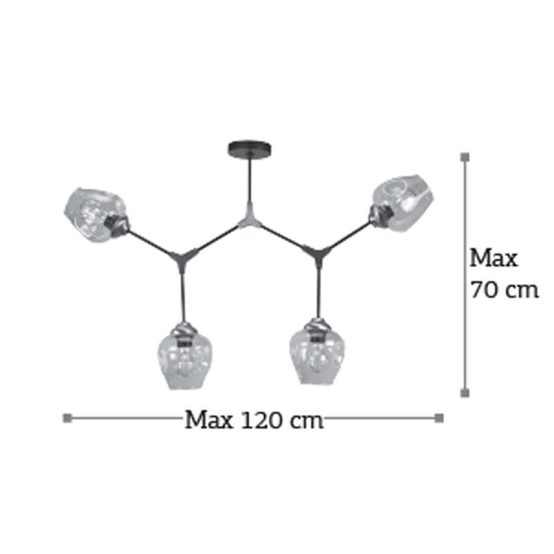 Πρόκειται για ένα μεταλλικό κρεμαστό φωτιστικό μαύρου χρώματος με νίκελ διακριτικά στοιχεία και έξι λαμπτήρες. Το γυαλί είναι διάφανο, αλλά υπάρχει και η επιλογή του φιμέ χρώματος. Οι βραχίονες κινούνται για να λάβουν το επιθυμητό σχήμα. Η μίνιμαλ σχεδίασή του το τοποθετεί σε οποιονδήποτε μοντέρνο εσωτερικό χώρο.