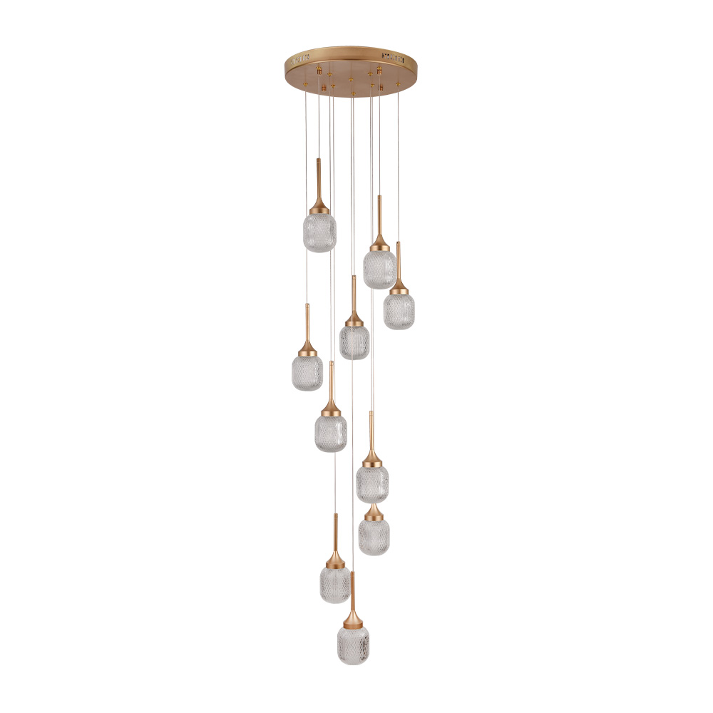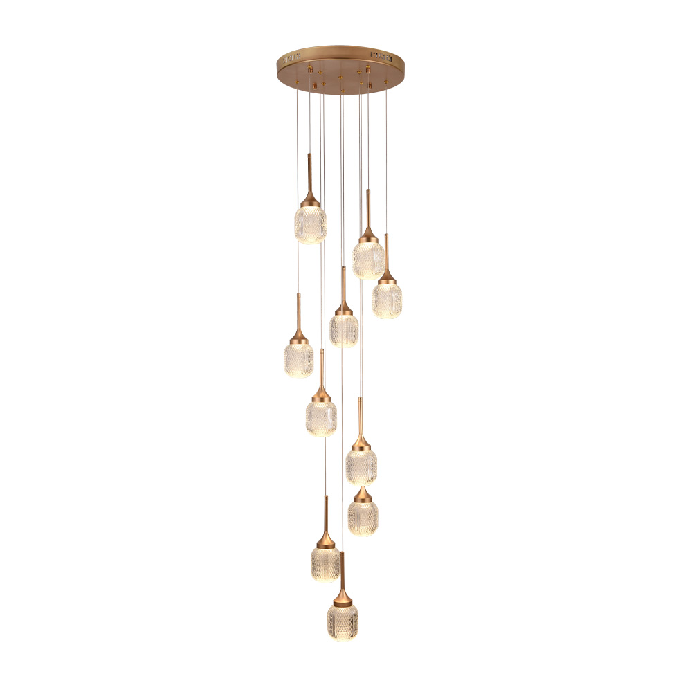 Inlight Κρεμαστό φωτιστικό LED 10*10W από χρυσαφί μέταλλο και ακρυλικό D:30x200cm (4077-10-Golden)