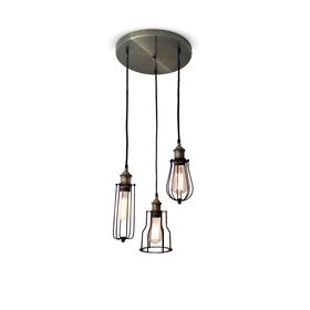 Μεταλλικό μαύρο πλέγμα με μαύρο υφασμάτινο καλώδιο, μπρονζέ ντουί και ροζέτα.