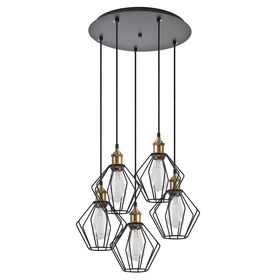 SE21-BR-10-5BL-GR1 MAGNUM Bronze Metal Pendant Black Metal Grid with Black Fabric Cable