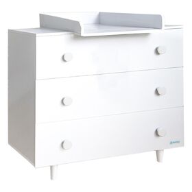 Παιδική συρταριέρα-αλλαξιέρα – Η αποσπώμενη αλλαξιέρα εξασφαλίζει την άνετη αλλαγή του μωρού – Υπερυψωμένα πλαϊνά και πλάτη της αλλαξιέρας προσφέρουν μεγαλύτερη ασφάλεια για το μωρό – 3 ευρύχωρα συρτάρια – Μηχανισμούς ασφαλείας Τα παιδικά έπιπλα κατασκευάζονται και συσκευάζονται σύμφωνα με το ευρωπαϊκό πρότυπο ασφαλείας EN 12221-1,2:2008 + A1:2013 καθώς και με μη τοξικά χρώματα. Διαστάσεις Συρταριέρας: L90 x W53 x H85 cm Διαστάσεις αποσπώμενης Αλλαξιέρας: L48 x W73 x H8 cm